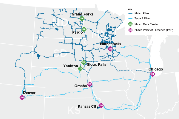 Are you searching for connectivity services that can keep pace with your business's growth and energy? Then look no further. Midco is your beacon in the sea of solutions, shining a light on the services you need to flourish. Midco’s coverage map extends throughout the Midwest, providing the fastest, most reliable long-haul fiber network.